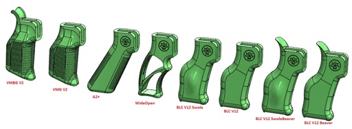 A small collection of AR Grips designed originally by MadMax, and Void3dprinting. Stippled by Moderator Gage. Print as you like