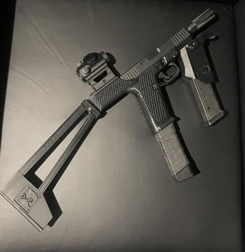 Mock glock stock on the sea. Comes with a brace version. After trying that out, I ended up ordering a flux brace knockoff from china, that’s actually scheduled to come in a few days. Should be better.