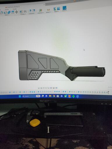 Space Cowboy grip with the Spike Spiegel panels, both made by u/Ricecutta. It’s got a slot for a screw to hold the panels in but i just JB weld them in place.