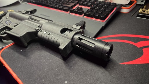 I've made the Komodaru flash can one printable piece. It's been scaled down to fit inside deAR22 handguards and utilizes printed 1/2"x28 threads for attachment. No extra hardware is needed, print and go. Filled nylons are highly recommended for this remix. Models have been optimized for printing without supports. Both lengths included.